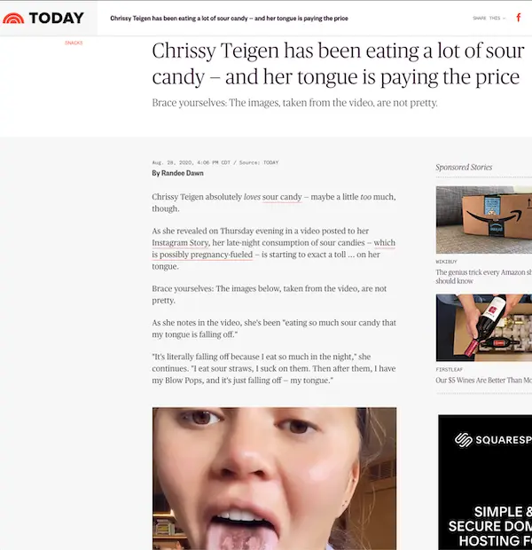 In a fun twist, our Lane & Associates article about Sour Candy was featured as a source on Today.com’s latest article about Chrissy Teigen.
