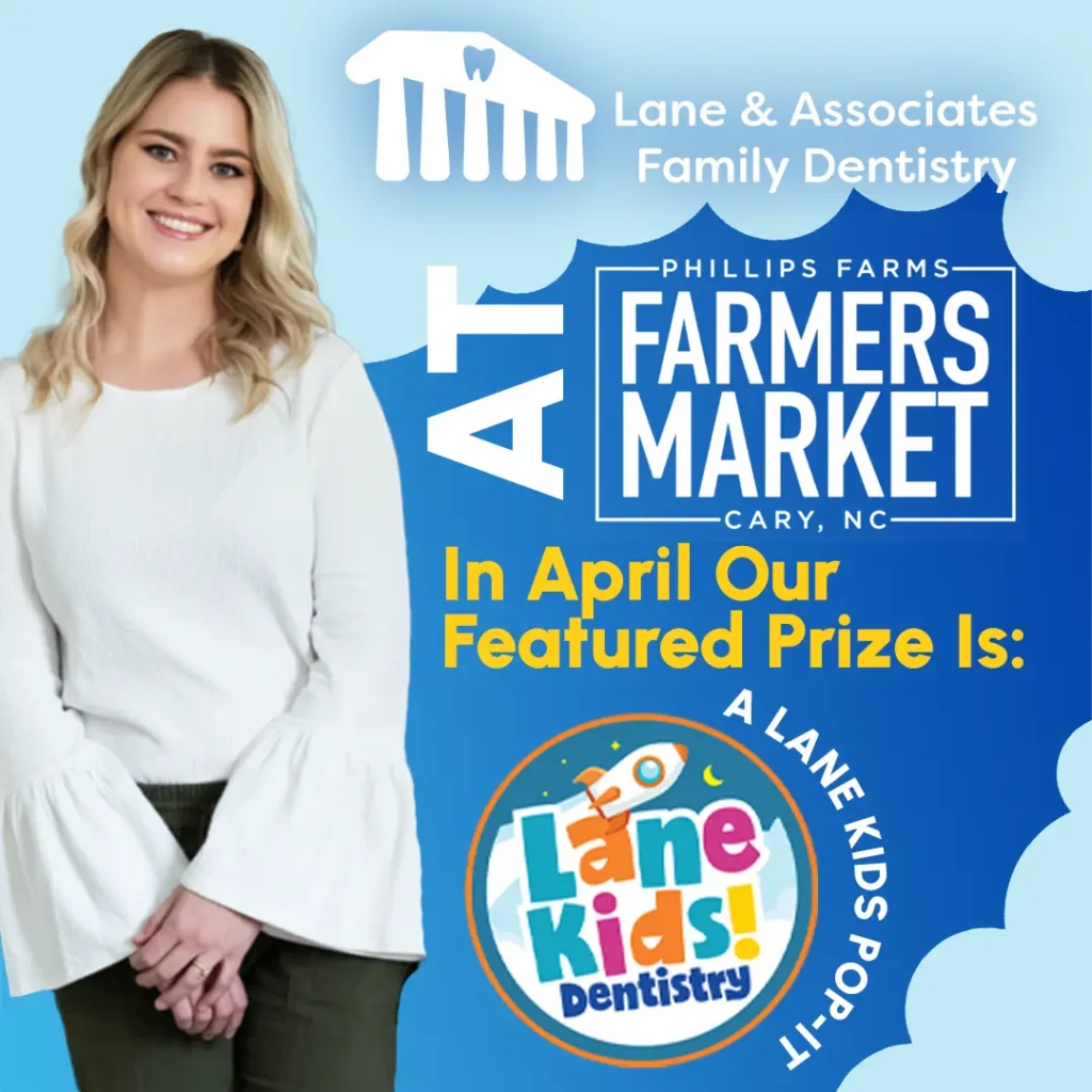 We are so excited to be back at Phillips Farm in Cary as the title sponsor of their farmer’s market. Every Saturday for the next 4 months (April – August) Lane and Associates will have a table set up with lots of goodies and prizes.  Stop by to spin the prize wheel and learn all about the great dental care that LAA has to offer you and your family.  While checking out all the good stuff at our booth, don’t forget to register for a chance to win a $200 Target gift cardIt’s time to get outside and enjoy everything that the Phillips Farm Market has to offer.