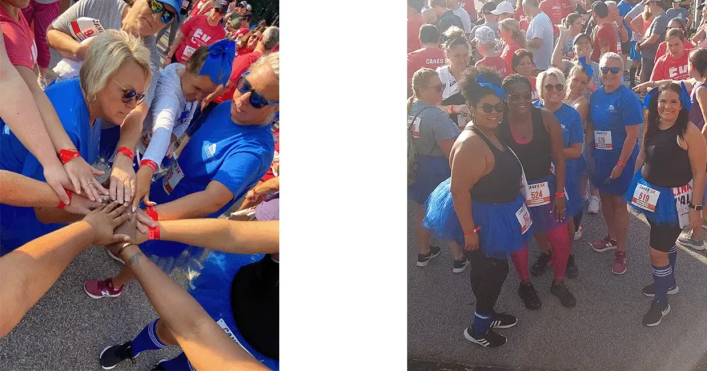 The LAA crew arrived to the PNC Arena around 8am. After being greeted with bright smiling faces, PNC blasted music to get everyone pumped. The crowd was vibrant, and participants began to fill the stadium, painting the arena red with their complimentary Canes 5k tees. As the time approached for the race to begin, PNC kept the energy high by introducing players from the Carolina Hurricanes. The cheers sent a huge wave of joy throughout the crowd. This was the perfect segue to begin the race.